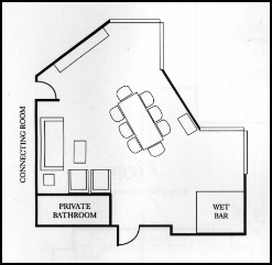 | Room | Size | Square Feet | Reception | Conference | Banquet |