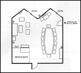 | Room | Size | Square Feet | Reception | Conference | Banquet |